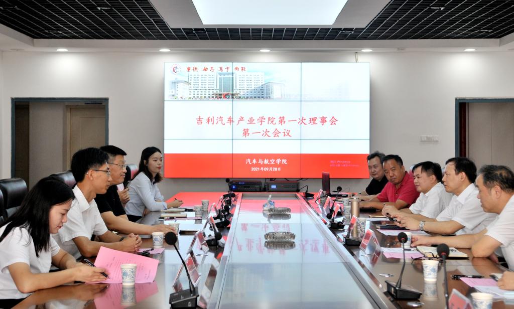 仪式结束后,全员前往实训楼前参加吉利汽车“桃李计划”车展,并集体合影。在参观完校园和实训中心后,吉利汽车产业学院全体成员在四楼协同创新中心召开了理事会第一次会议。