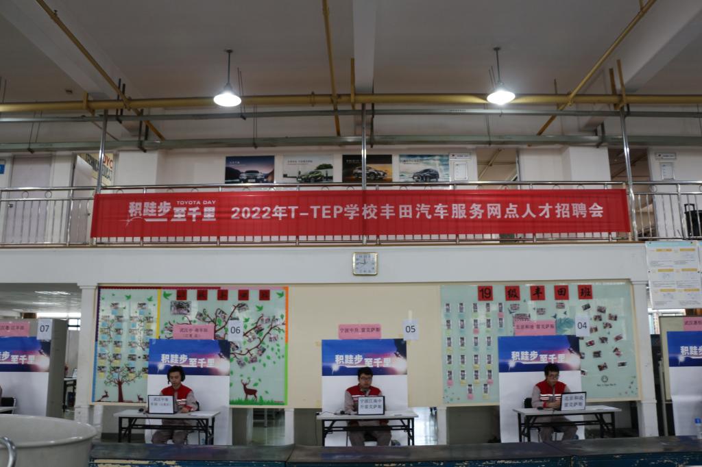6月2日,“积跬步,至千里”——2022年T-TEP学校丰田汽车服务网点人才招聘会在我校成功举行。来自武汉中南丰田、武汉惠恒雷克萨斯、苏州裕达丰田、北京和凌雷克萨斯等14家省内外的丰田经销店参加,提供了一般维修、钣金、油漆、服务顾问、销售顾问等岗位,岗位需求是本届丰田班学生人数的两倍多。
