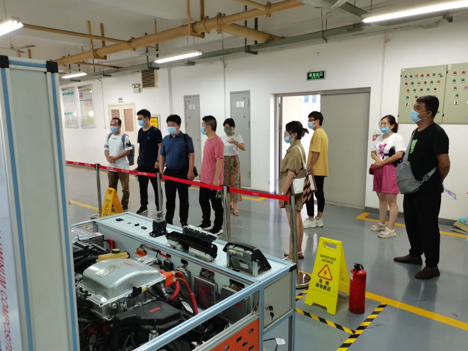 会前,薛玉荣一行参观了新能源汽车技术专业群实训中心,实习中心相关负责人对实训中心建设的相关情况做了详细介绍。