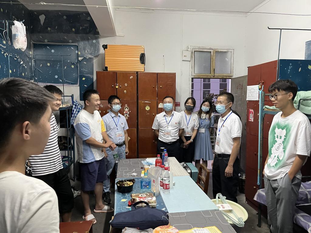 9月15日晚,正值新生开学报到第一天,为使学院2022级新生更好更快适应新环境新生活,了解并帮助新生解决入学报到期间的实际困难,汽车与航空学院党总支书记、院长李建明带队赴路南5栋、8栋学生宿舍看望刚刚到校的新生。学院副院长张鹏,专业群主任陈庭、李洪亮,学工办主任孔盼盼及全体新生辅导员一同前往。