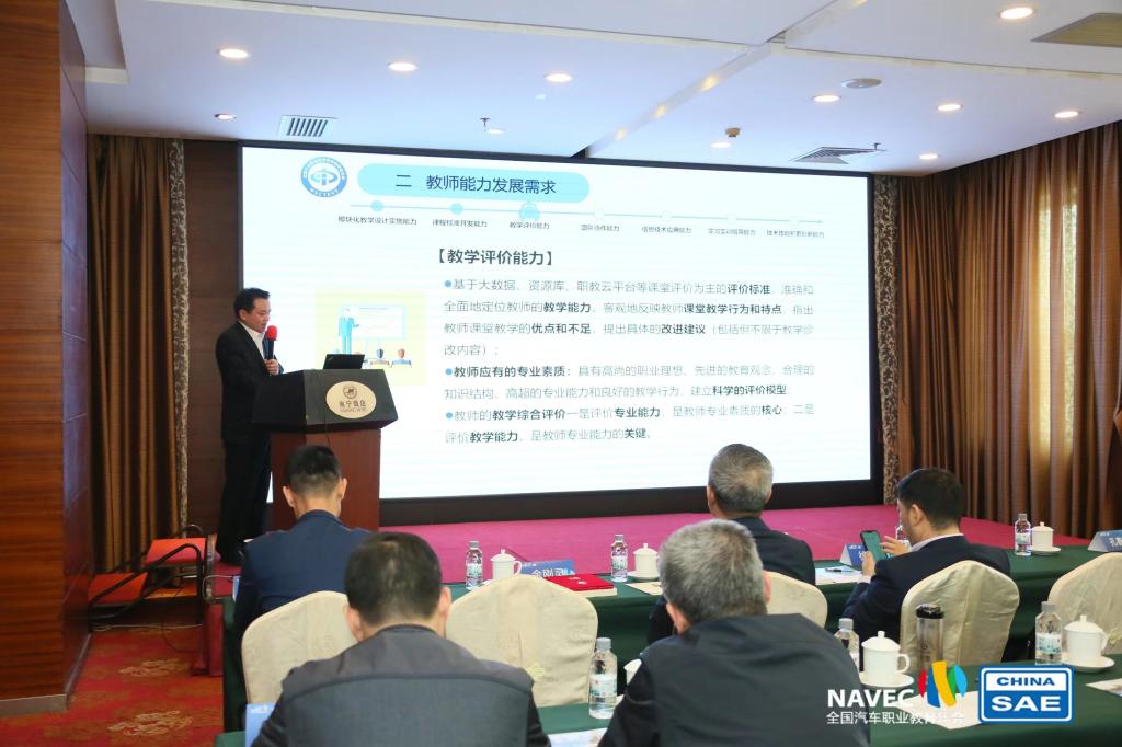年会期间,举行了汽车行指委成立揭牌仪式、全国汽车职业教育教学指导委员会成立大会,《中国汽车职业教育发展报告》编制工作启动会以及《龙头企业战略合作》签署仪式。会上李全新当选为汽车教指委委员和新能源汽车专指委副主任委员,李建明新当选新能源汽车专指委副秘书长。大会期间还组织召开分论坛,围绕智能网联汽车类、汽车制造类、新能源汽车类、汽车维修类、汽车营销类专业以及课程思政、教师发展、校企合作工作等8个专题开展分论坛研讨。汽车与航空学院李远军受邀在年会教师发展分论坛上做《项目协同 平台协作 打造高水平双师教学创新团队》主题报告,面向全国汽车职教同行分享了我校教师创新团队建设成果和经验。汽车与航空学院田兴政受邀在年会新能源汽车类分论坛上做《新能源汽车检测与维修技术专业教学标准修(制)订工作及专业简介内涵解读》主题报告,分享了教学标准修(制)定工作历程、心得体会并对专业简介进行解读。