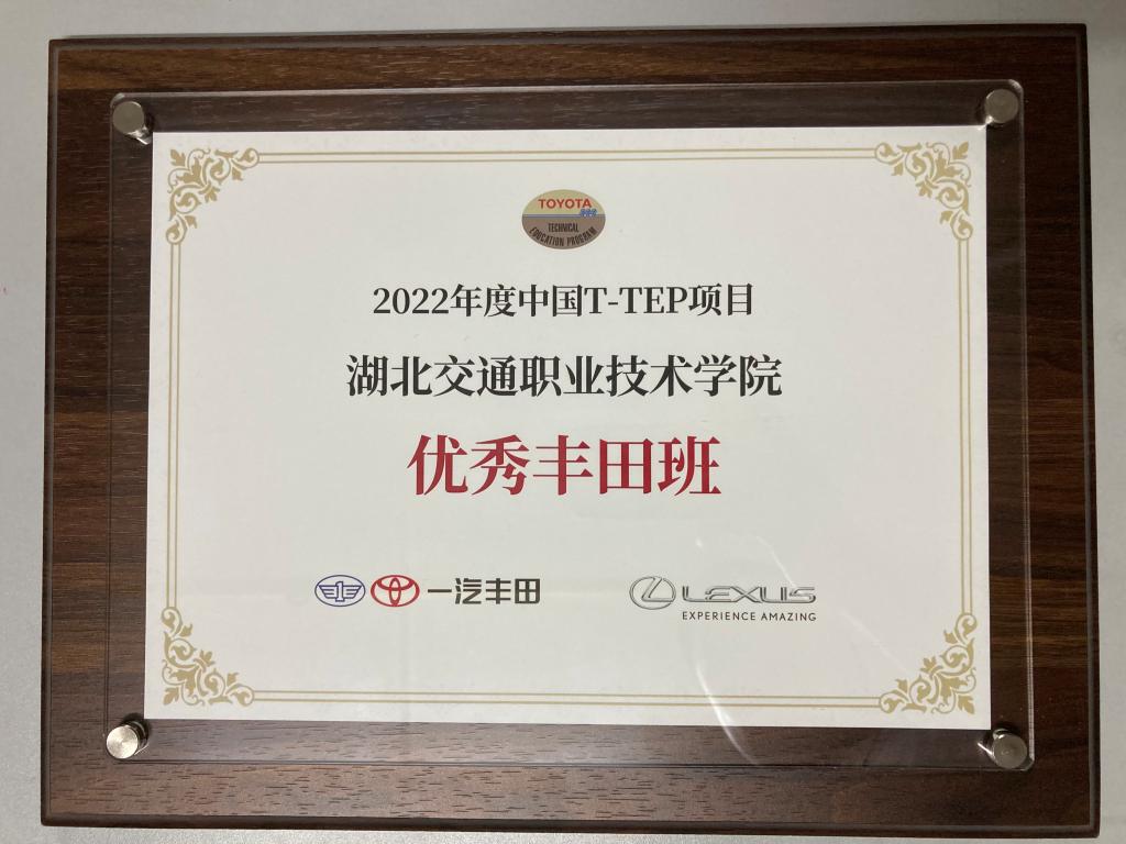 2022年11月,T-TEP事务局为发挥先进班集体、优秀学生的示范引领作用,表彰先进树立典型,面向全国全部的T-TEP合作院校开展“优秀丰田班”以及“优秀丰田班学生”的评选活动,评选根据订单班的组建、TOYOTA-DAY丰田招聘会、丰田班教学、丰田班活动、丰田班文化、实习就业等10余项指标综合评价。我校丰田班在丰田35所合作院校评选中脱颖而出,是5所荣获全国“优秀丰田班”荣誉称号的学校之一。
