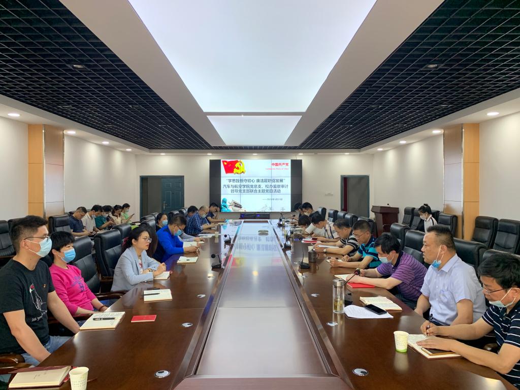 5月13日下午,汽车与航空学院党总支联合校办监察审计督导党支部在协同创新中心组织开展“学思践悟守初心·廉洁履职促发展”五月份主题党日活动,校党委副书记、副校长李全以一名普通党员的身份参加活动,活动由马进主持。