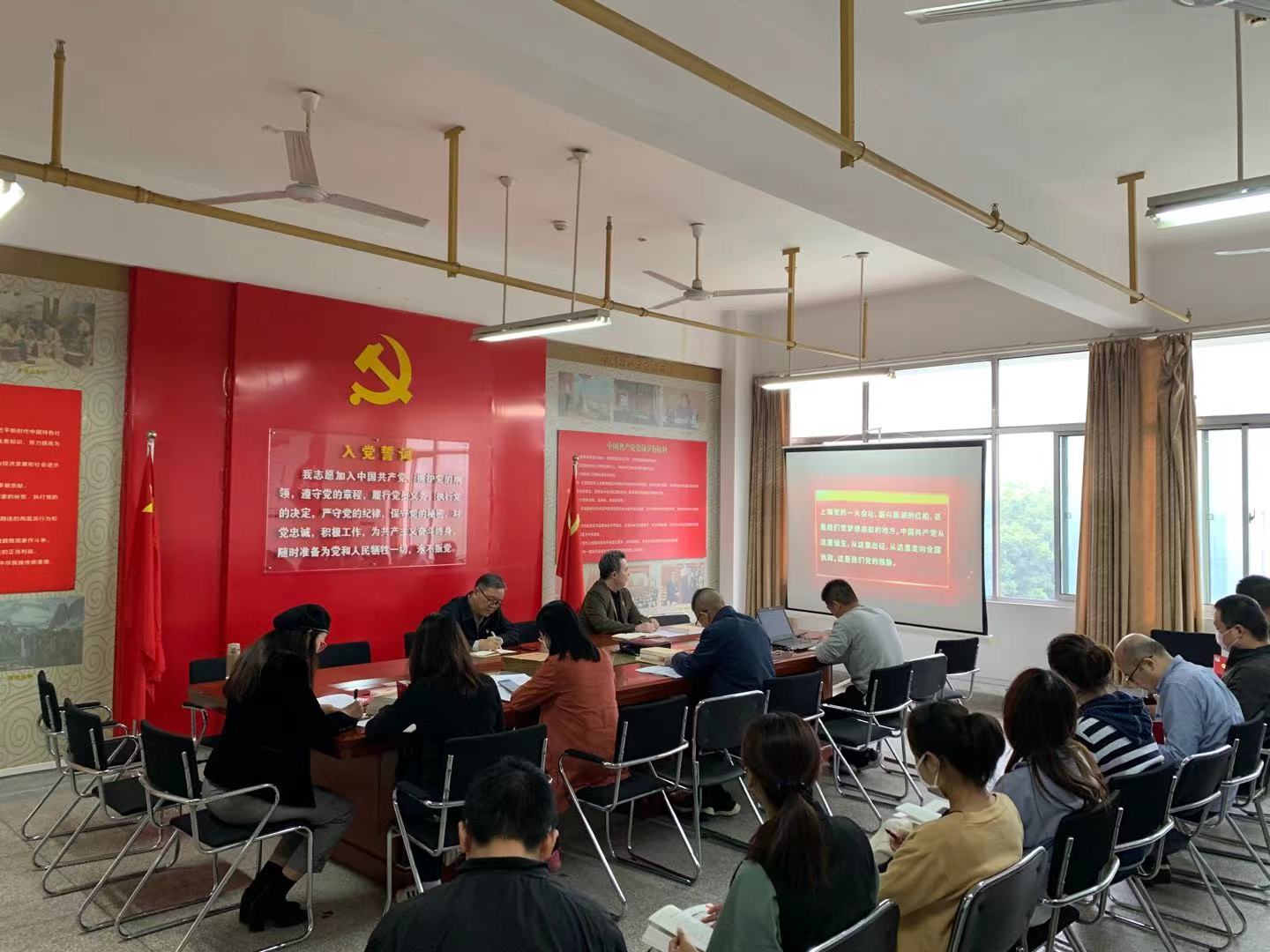 交流环节,党员同志纷纷围绕本次学习内容进行了主题发言。常同珍老师、杨朝老师分别从自己学习四本书的体会谈起,结合“七一讲话”精神,分享了自己将党史学习应用于自己学习、工作、生活,红色文化植入专业课程进行课程思政的教学心得。李全同志分享了自己党史学习体会后,还对与会全体党员进行了党史学习方法指导,如何进行内容批注、精读、思考,怎样将理论联系工作等方面进行了系统指导。