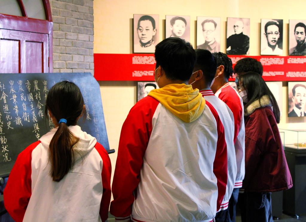 武汉革命博物馆是风云1927年的重要见证,下辖武昌农讲所、毛泽东旧居、中共五大会址、起义门、中国共产党纪律建设历史陈列馆等五处革命旧址和红色场馆。参观的同学们通过各展览厅内的照片、文物、油画、文字材料等多种记录形式,详细了解了共产党人在党建立初期的艰难与不屈。在农讲所,望着操场前方的演讲站台,大家仿佛聆听到了毛泽东同志慷慨激昂的陈词;在毛泽东旧居,看着狭小的卧室及临窗桌上摆放着的一盏煤油灯,大家仿佛看到了毛泽东同志夜晚伏案工作,奋笔疾书的模样;在五大会址,看着那些陈旧的凳子、桌子,大家眼前仿佛出现当时中共五大召开时的场景。