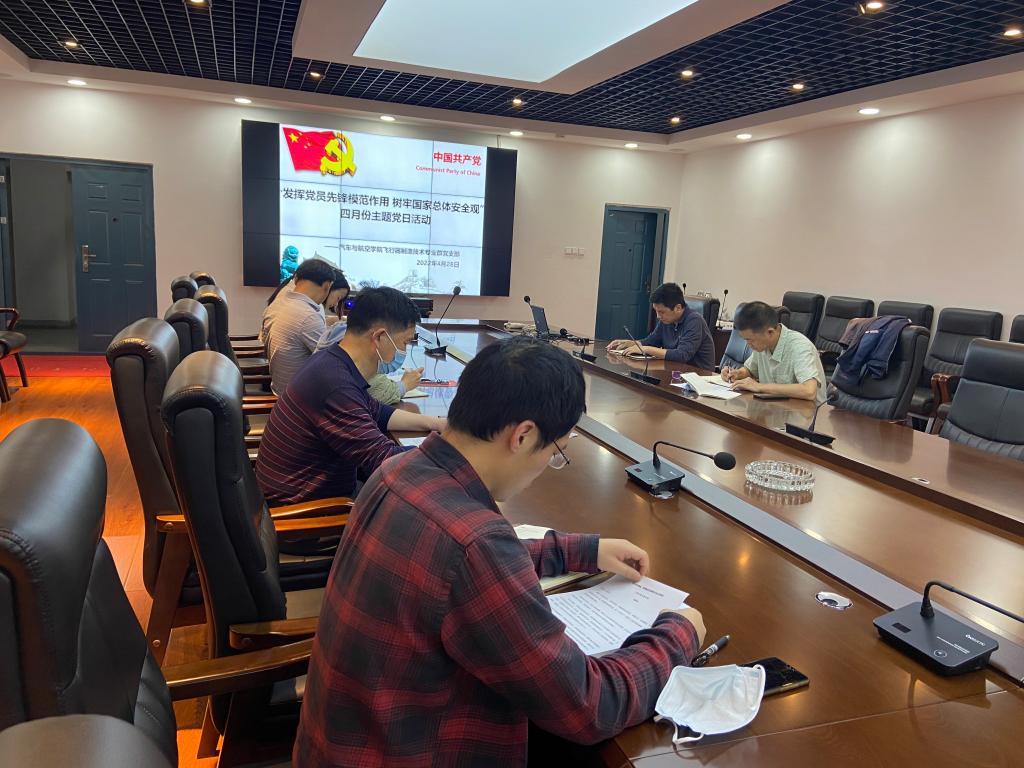 4月27日下午,汽车与航空学院飞行器制造技术专业群教师党支部在协同创新中心组织开展“发挥党员先锋模范作用 树牢国家总体安全观”四月主题党日活动,会议由支部副书记王寅晨主持。