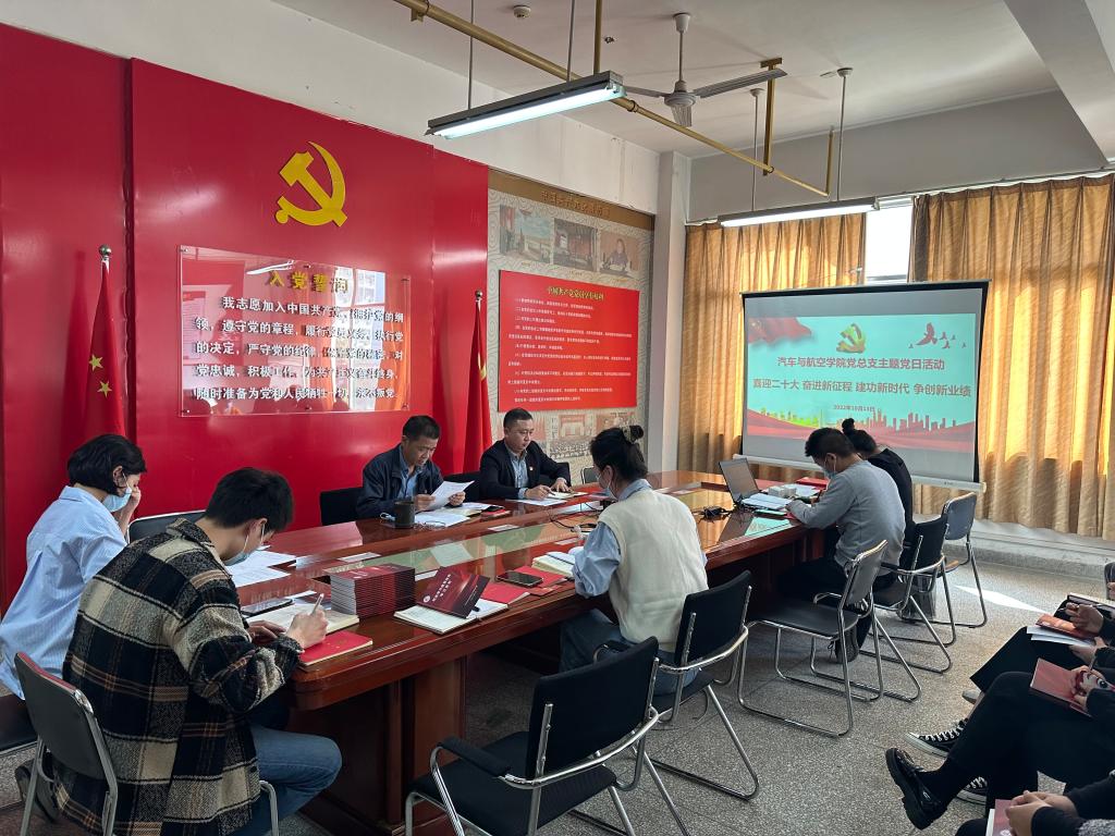 10月13日下午,汽车与航空学院党总支在G407党员活动室开展了“喜迎二十大 奋进新征程 建功新时代 争创新业绩”10月份主题党日活动,学院党总支全体党员参会。