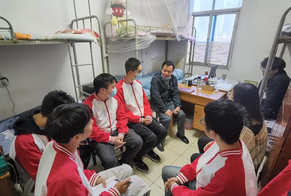 10月5日至14日,学院党总支书记李建明带领党总支成员深入各自联系的班级,通过开展随堂听课,了解教师课堂授课情况及学生的学习情况,通过参加各班开展的“喜迎二十大 奋进新时代”主题班团活动,引导学生关注时事政治,树立正确的世界观、人生观和价值观。同时,学院党总支成员逐一走访班级学生寝室,耐心查看了寝室生活情况与卫生安全,随后,在寝室与学生开展座谈。座谈中,党总支成员认真倾听学生心声并回应学生关切,耐心答疑解惑,对现场能协调解决的马上就办,对现场不能解决的问题一一记录在册,共收集整理学生相关意见、建议12条,将集中统一报送有关部门并积极协调解决。