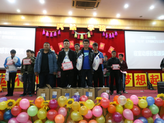 1602011,1602021,1602025,1602065,分别获得趣味运动会单项,1602054获得总分第一,1602056获得了精神文明奖,1602054获得了最佳团体奖。寝室动感影集比赛中,获得一、二、三等奖的寝室共有二十个,张玲、刘清楚、罗亚迪、李齐等老师为他们颁发了奖状和奖品。