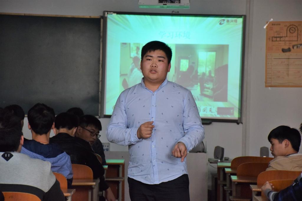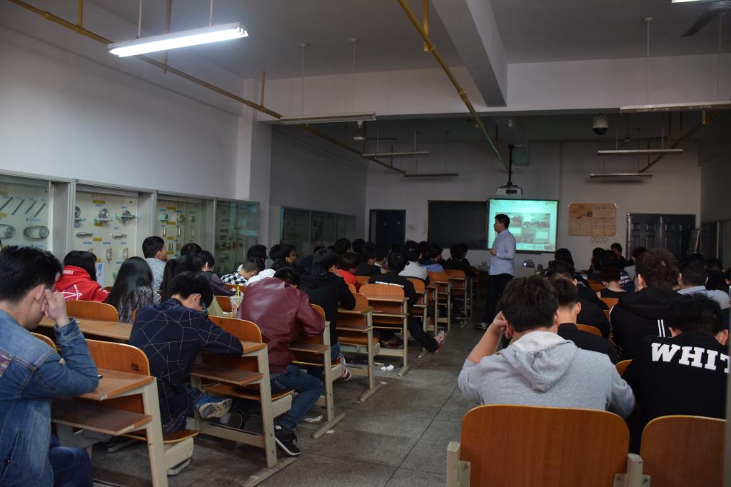 陶勋是我院往届分团委学生会副主席,后因表现优异,在老师的推荐下去了广东泰兴隆润滑油有限公司。在演讲开始时,陶勋播放视频向在座学子讲解了泰兴隆有限公司的发展史,使在座学子对他的工作背景有了一定的了解;接着,用PTT与在座学子互动交流的方式告诉同学们“选择比努力更重要”这句话的重要性,公司平台的选择对整体能力的锻炼至关重要,不要注重选择实习工资的多少,而应让自己变得更有价值!