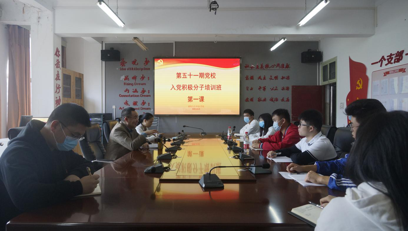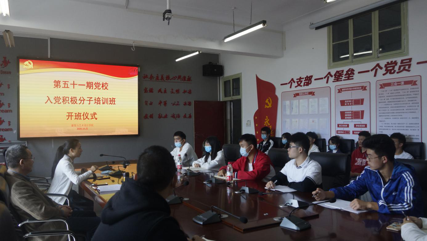 2020年10月21日中午,建筑与艺术设计学院“第五十一期入党积极分子培训班”顺利开班,本次培训班旨在让入党积极分子在学习中修养党性,进一步坚定理想信念。建筑与艺术设计学院李刚院长、党总支书记谭明铭出席并致辞,开班仪式由李睿乾老师主持。参加此次仪式的还有17名积极入党分子。