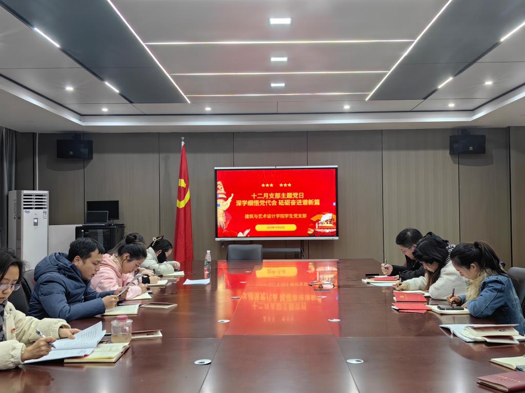 12月25日下午,建筑与艺术设计学院学生党支部在勤学楼313党员活动室开展了12月支部主题党日活动,会议由李睿乾主持,全体党员参加了会议。