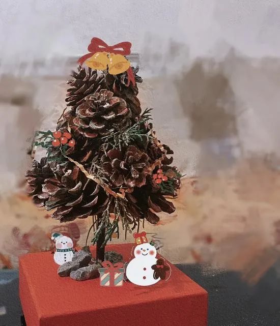 作品是一颗圣诞树,看见这个作品时我脑海里想起罗丹的话:“世界上并不缺少美,只是缺少发现美的眼睛。”许多人都不会去用心留意,可见这个作品很用心。