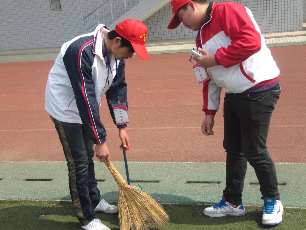 在“清扫校园活动”前期,我系学生会就通过进班宣传和宣传展板的形式向全系同学们介绍本次活动,不少志愿者都愿意参加此次活动。活动当天,报名的同学便早早在校标等候院团委安排。组织人员强调具体要求和说明我系主要负责操场区域后,大家便拿起打扫工具在我系划分区域打扫起来。打扫期间因操场草坪不易用扫帚打扫,大家便用手拾起垃圾。通过大家的共同努力,约30分钟便将操场打扫干净,顺利完成任务。