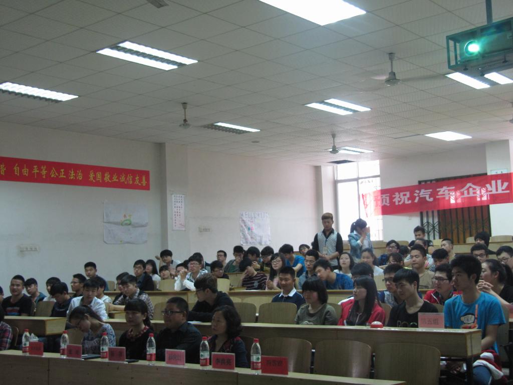为让同学们充分了解汽车企业文化, 4月1日,由我系汽车商务协会举办的汽车企业文化大赛在A213教室隆重举行,李洪亮老师,杨朝老师,14级辅导员以及14级各班代表参与了此次大赛。