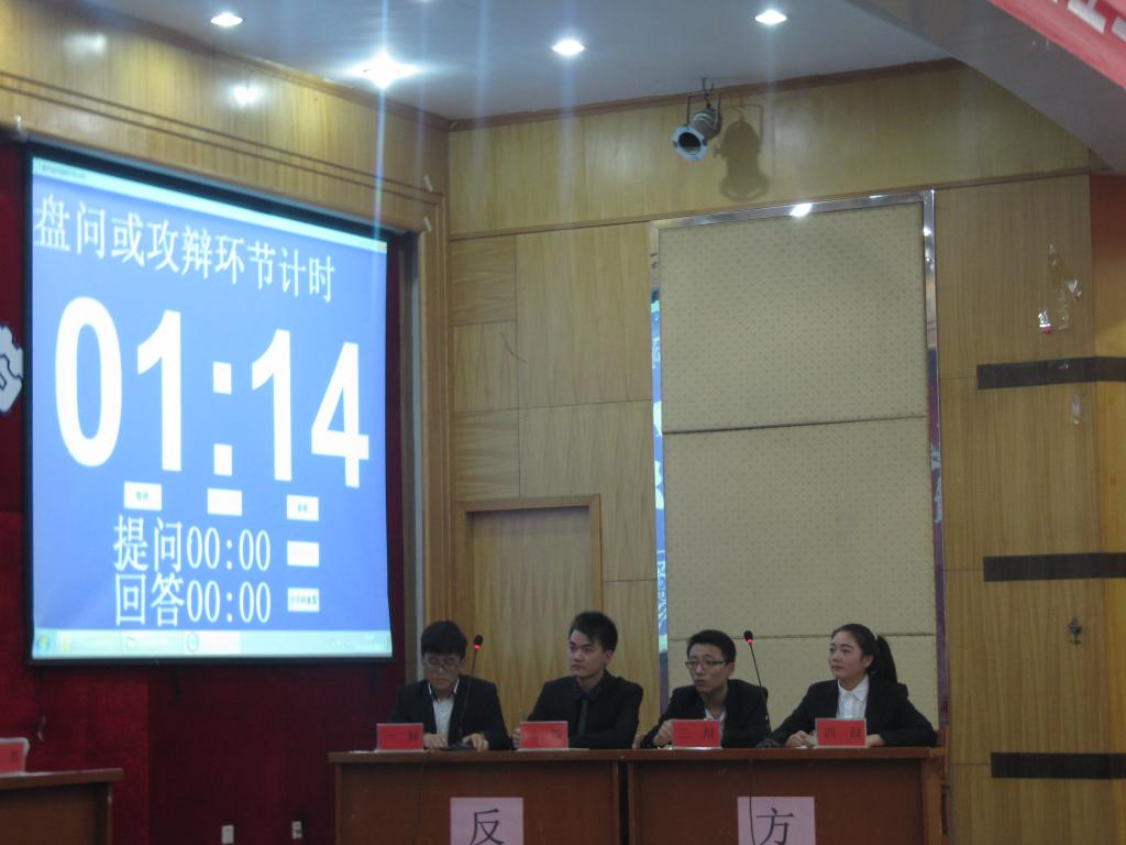 群雄舌战展雄风,争锋相对辩天下。在14届科技文化艺术节辩论赛中各系涌现出不少“伶牙俐齿”的骄雄,我系于3月29日于管理工程系在第一教学楼学术报告厅中首战告捷,顺利进入半决赛。当天的比赛中我系辩手在“金钱的追求与道德的追求能统一”问题上引经据典,给大家上演了一场精彩的辩论赛。