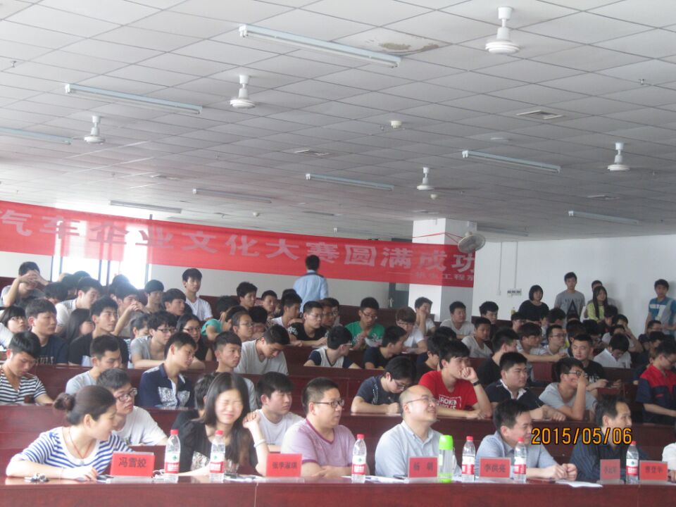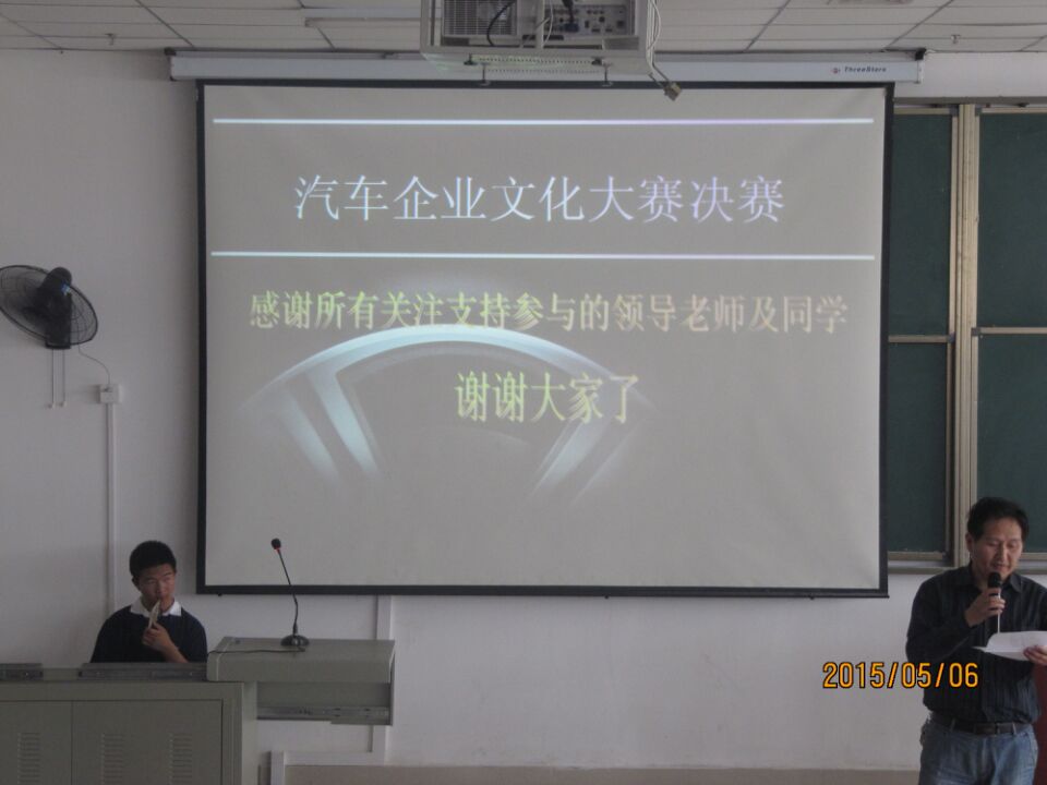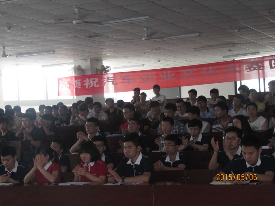 5月7日,由汽车商务协会举办的第一届汽车企业文化大赛决赛在学院D501教室隆重举行,汽车与航空学曹登华主任,常同珍老师,李洪亮老师,杨朝老师,14级各班辅导员以及各班代表两百余人参加了此次大赛。