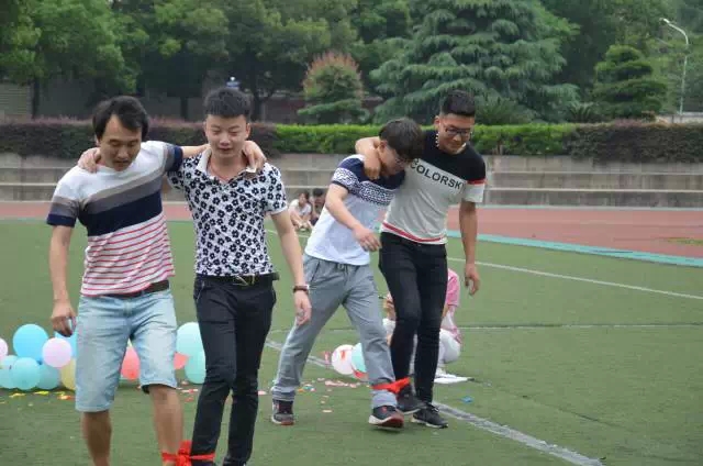 伴随着活力的歌曲,此次活动正式开始。首先组织人员把大家分成四组,进行第一场游戏“神龙摆尾”。随着主持人一声令下,第一场游戏开始,每组队员积极的态度和不甘人后的精神,使得游戏一开始就精彩万分,比赛告诉了大家团队协调的重要性。接着是第二场游戏“翻山过海”,本场游戏难度大大加强,首先是每队两人一组,在一个人踢毽子踢满十个的同时,另一名队员需要转圈。然后他们需要将双腿绑在一起,一起经历跳绳、跨彩带、踩气球等项目。