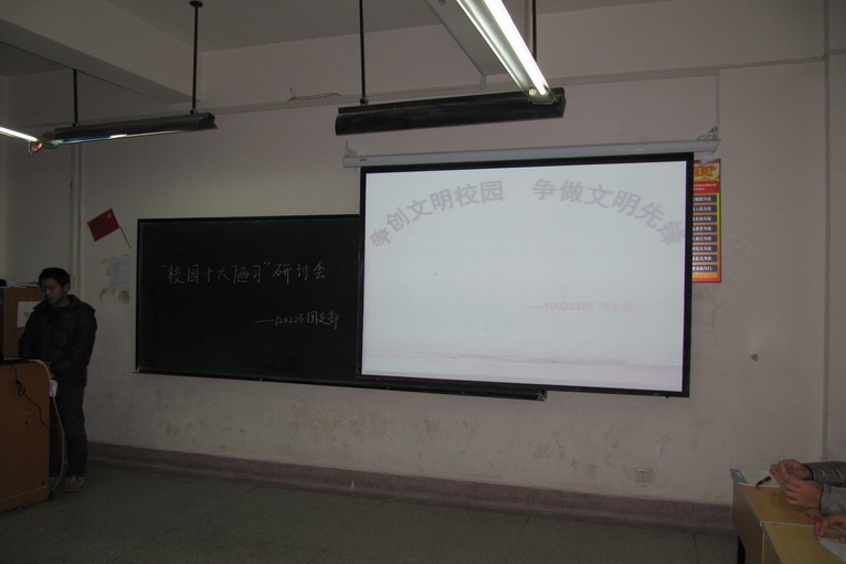 12月4日晚7:00,由机电系举办的“校园十大陋习”研讨会在A栋6楼顺利举行,承办本次研讨会的120223班、120227班两个代表班级全体同学参加此次会议。