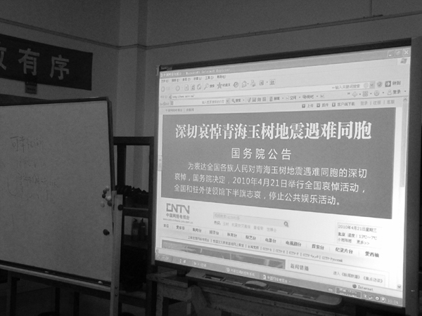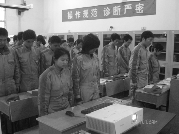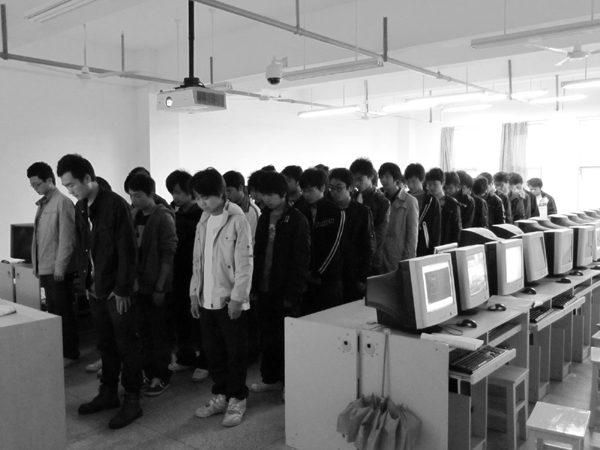 2010年4月21日上午10时,为表达对青海玉树地震遇难同胞的深切哀悼,机电工程系分团委组织团员青年在实训室和教室举行了为玉树遇难同胞集体默哀活动。