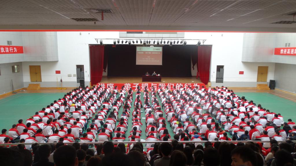 张波结合自己的日常工作和生活,用视频及图片的形式生动地展示了这一段艰辛却充实的经历,他还结合《弟子规》中倡导的为人处事之道激励学弟学妹们脚踏实地、积极向上,努力学习专业技能、养成良好的学习习惯。