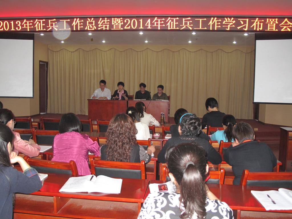 5月9日上午9:00时,我院学生工作处在培训楼三楼多功能厅组织召开2013年征兵工作总结暨2014年征兵工作学习布置会。各系部党总支书记和辅导员参加会议,谢彤副院长莅临会议并讲话。