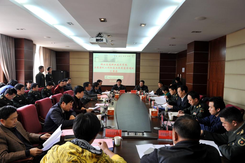 3月24日下午,湖北省教育厅高校学生处处长肖慎钢、省军区学生军训办副主任岳中成、省民政厅优抚处副主任科员刘建军和湖北生物科技职业学院学工处副处长江胜组成的专项检查组来我校检查兵役登记工作和惠兵政策落实情况,武汉市警备区和洪山区人民武装部领导随同检查。华中科技大学、中国地质大学、中南民族大学、长江职业学院、武汉城市职业学院等五所高校大学生征兵工作负责人参会。校领导陈方晔、谢彤及相关部门负责人出席本次会议。