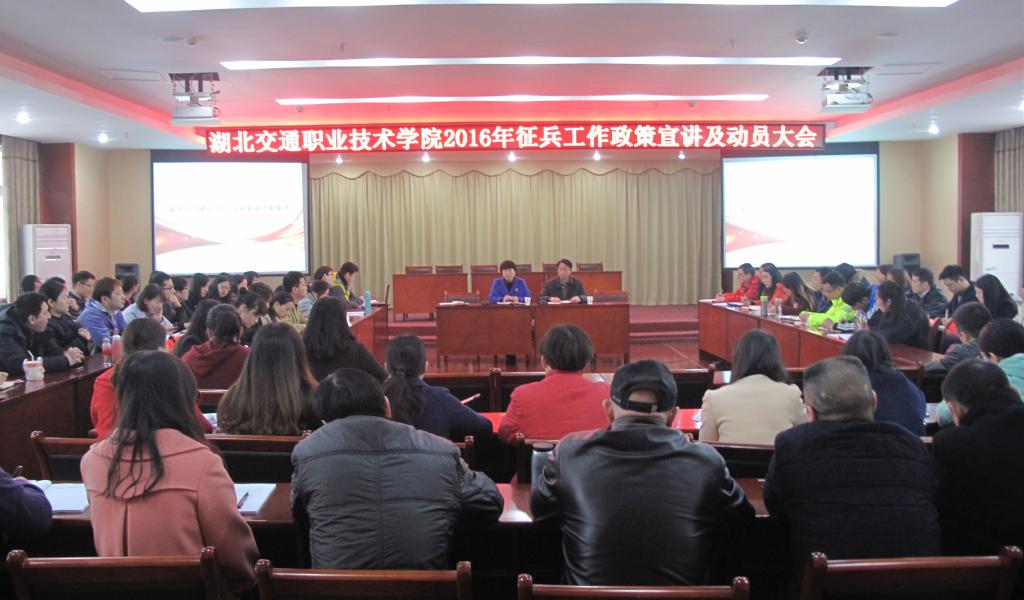 3月17日,学校举办主题为“服务国防建设大局 培育爱国崇军英才”2016年大学生义务兵征兵工作宣讲会,副校长谢彤、学校武装部部长及副部长、各二级学院党总支书记、全体辅导员、班主任参加了本次会议。