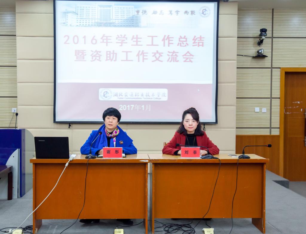 1月16日, 2016年学生工作总结暨资助工作交流会在培训楼多功能厅圆满举行。副校长谢彤、相关部门负责人及学校全体辅导员(班主任)参会。