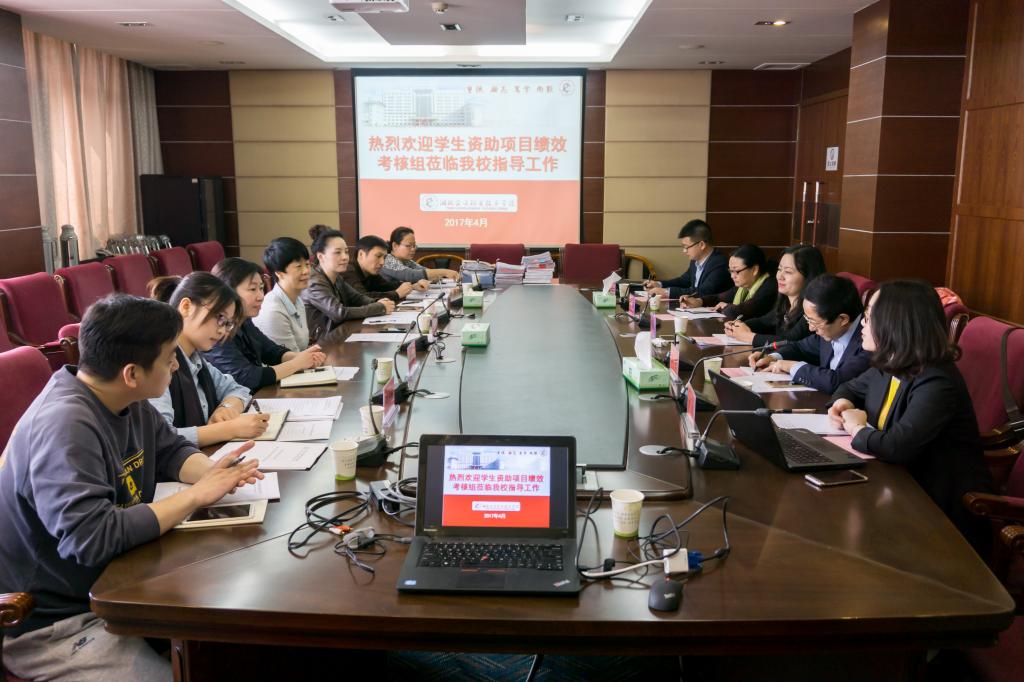 4月27日,省教育厅教育项目绩效评价专家组一行五人莅临我校,就我校2016年学生资助工作开展情况进行检查指导。副校长谢彤出席会议,学生工作处、计划财务处等部门负责人及学生资助中心工作人员参会。