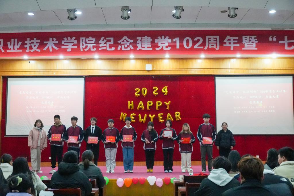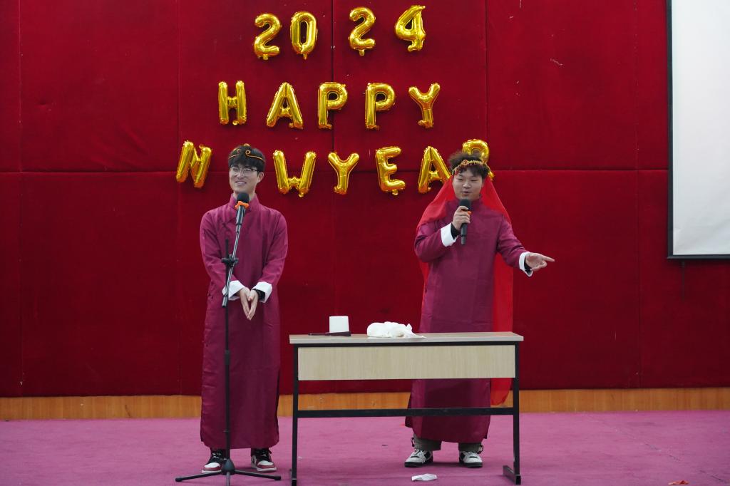 朱婧为晚会致辞,祝贺受到表彰的学生先进集体和先进个人,回顾2023年学院师生取得的重要成果,勉励同学们牢记自己的青春誓言。她希望在新的征程上,同学们继续戒骄戒躁、再接再厉、再创辉煌。