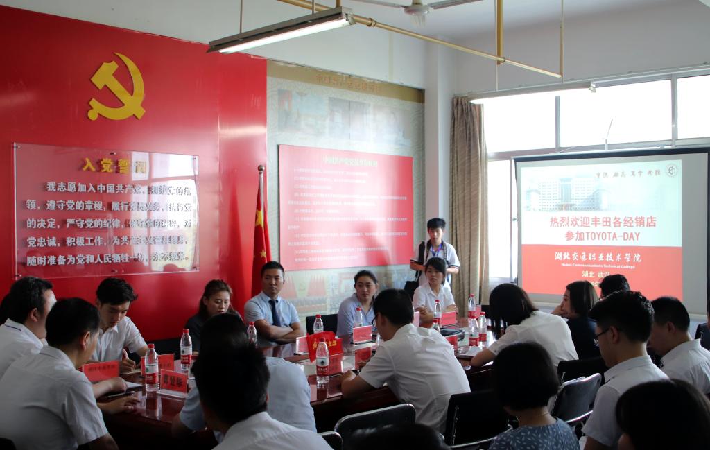 校企见面会上,党委副书记副校长李全致欢迎辞,T-TEP项目负责人进行了T-TEP学校和“丰田班”情况的介绍,并安排丰田班学生进行自我介绍,16家经销店总负责人也分别进行企业介绍和招聘岗位说明。