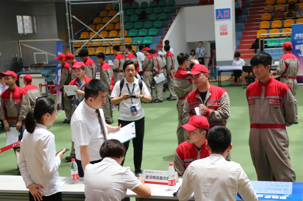 下午在学校体育馆分别进行了丰田班和非丰田班专场招聘会,最终有120多名学生与企业当场签下就业意向协议,招聘会还吸引了部分17级学生前来观摩,整个招聘会现场秩序井然。