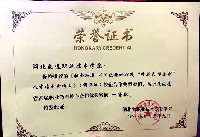 10月19-20日,湖北省首届职业教育校企合作典型案例成果展示暨经验推广会在襄阳召开。我校推荐的名为《校企融通 以工匠精神打造“精英式学徒制”人才培养新模式》典型案例荣获一等奖,《服务“军民融合”国家战略 助力“海军强国”中国梦》和《基于协同创新中心培养学生工匠精神》均获二等奖。