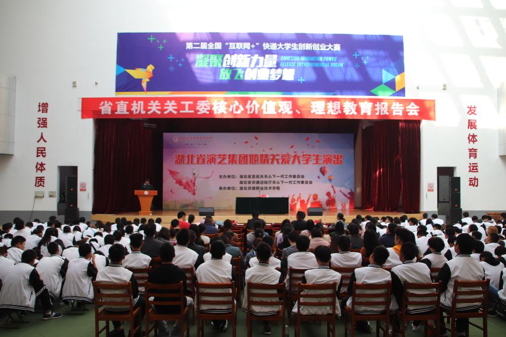 10月23日下午,由湖北省直机关关心下一代工作委员会、湖北省交通运输厅关心下一代工作委员会主办,我校承办的大学生价值观教育报告会暨演出活动在我校体育馆隆重举行。省直机关关工委常务副主任李纪刚、秘书长郝保灿,武汉大学法学院副院长周运清教授出席此次活动。校工会主席李红艳主持本次活动。 李纪刚代表省直机关关工委做了重要讲话,他充分肯定了我校思想政治教育工作,感谢省演艺集团为大学生带来的文艺演出,希望广大学生认真聆听专家的辅导报告,用心感受省演艺集团的精彩演出,弘扬共同理想、凝聚精神力量、建设道德风尚,不忘初心,牢记使命,开拓创新,锐意进取,在实现中国梦的生动实践中放飞青春梦想,在为人民利益的不懈奋斗中书写人生华章。 武汉大学周运清教授作了题为《放飞青春梦想,做时代弄潮儿》的报告。周教授结合党和国家的发展历程,联系自己的成长经历,深入浅出地告诫青年一代要把握机遇,在国家富强安定的大背景下,培养健康的身心,树立清晰远大的目标,担当好实现中华民族伟大复兴的重任。 省演艺集团以歌舞、相声、魔术等表演方式为我校师生奉上了一场高水准的文化盛宴。 我校800多名师生代表参加了此次核心价值观报告暨演出活动。与会人员纷纷表示将在以后的学习和工作中,将社会主义核心价值观内化于心,外化于行,把个人的进步成长同实现“中国梦”的伟大事业密切联系起来,树立正确的世界观、人生观和价值观,自觉把人生追求融于到党和人民的伟大事业之中。(摄影/计力) |