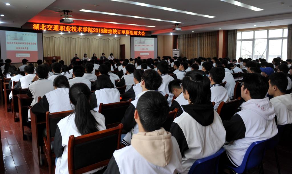 “地铁改变武汉,争做地铁人”。3月19日下午,我校与武汉地铁集团校企合作“2018级地铁订单班”组班仪式在学校培训楼三楼隆重举行。武汉地铁集团人力资源部副部长章亚东、人力资源部职员周叶青一行莅临我校指导交流。 校领导谢彤出席组班仪式并致辞,她指出,我校与武汉地铁集团深度融合、携手共进,在人才培养、专业建设、行业发展上不断探讨、相互支持,取得了较大成果,实现了高职教育与行业产业的互动对接,推动了产教融合和双元育人模式的进步。同时,她对进入订单班的同学们提出三点要求:一是希望2018级地铁订单班的同学们珍惜机遇,调整心态,以积极地态度迎接新的学习要求。二是希望同学们弘扬“工匠精神”,刻苦勤奋,认真学习专业知识,熟练掌握专业技能,成为爱岗敬业的、有本领的、高素质的“武汉地铁人”。三是希望相关培养部门进一步深化与武汉地铁集团的交流合作。希望校企双方能在完善人才培养方案、打造专业教学团队、开发教学资源、提高人才培养质量、推进学生高质量就业等方面有更深入的合作工作,推动企业与学校共赢和可持续发展。 武汉地铁集团人力资源部副部长章亚东讲解了武汉地铁运营的基本情况、企业文化,对相关专业学生毕业后的工作岗位、工作职责及发展前景进行了解读与剖析,让同学们深刻感受了“武汉地铁人”重诺践行的“武汉地铁精神”。 会后,武汉地铁集团章部长一行实地参观了学校教学实践基地,并深入了解订单班培养的情况。据了解,此次组建的2018级地铁订单班共有学生166人,是经过多轮考核推选出来的优秀学生。经过3年学习后,考试合格者将进入武汉地铁集团从事运营服务、设备维护和检修等工作。(摄影/张骊)