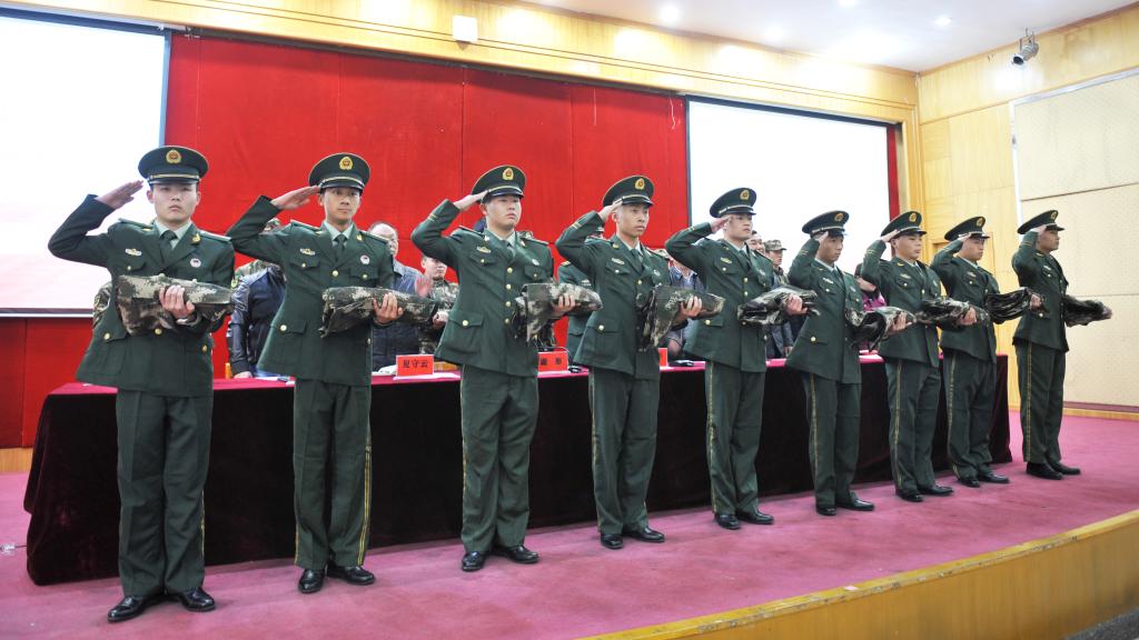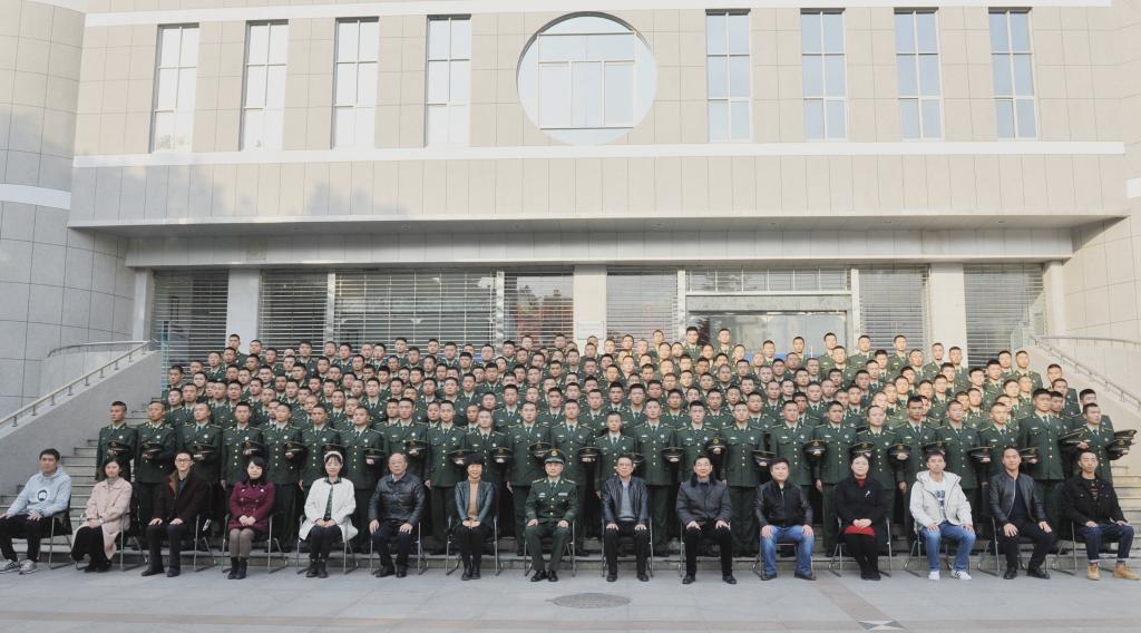 12月12日,我校2019级武警定向培养士官授装仪式在五楼学术报告厅举行。湖北省武警总队政治工作部人力资源处副处长田永平,我校校长陈方晔、副校长谢彤,公路与轨道学院、交通信息学院、航海学院、学工处、士官管理学院相关负责人、教师及2019级全体武警定向培养士官生参加仪式。本次授装仪式由谢彤主持。 授装仪式在庄严的国歌声中拉开帷幕。2019级全体武警定向培养士官生依次列队走上主席台接受授装,并集体宣誓“热爱祖国,严守纪律,服从管理,努力学习,刻苦训练,勇于吃苦,顽强拼搏,按四有军人标准要求自己,时刻接受祖国挑选。” 公路与轨道学院道路桥梁工程技术1901019班王健同学代表2019级武警定向培养士官生发言,表示将不断地向部队里的优秀官兵学习,早日把自己锻造成政治思想坚定,专业技能精湛、军事素质过硬的优秀武警士官。 田永平充分肯定了此次授装仪式,并向在座学子提出三点要求和希望:一是要把荣誉和责任作为不懈追求,要发自内心地热爱军装,为身上的军装争光添彩,按照四有军人标准来要求自己;二是要把使命和担当作为前进的动力,要培养吃苦耐劳的精神,努力掌握扎实的专业知识技能,练就过硬的军事本领,随时做好接受祖国挑选的准备,以优异的素质和能力胜任现代化的武警士官岗位的需求;三是要把严格自律作为护身的法宝,要有人生的定力和强烈的自律意识,要尊敬师长、团结战友和同学,遵守校纪校规和法律法规,培养优良的作风,为将来的毕业之路打下坚实的基础。 陈方晔代表学校衷心感谢湖北省武警总队各位领导一直以来的关心和指导,诚挚祝贺2019级武警定向培养士官生授装成功,简要介绍我校定向培养士官发展进程、培养方式和成果,并对士官生提出三点希望:一是牢记使命、砥砺奋斗,把热爱祖国、献身国防作为自己不断追求的人生目标;二是刻苦钻研、锻造技能,牢记校训,努力培养敬业严谨、精益求精的工匠精神,锻造技术精湛、专业过硬的综合素质;三是严格自律、勇敢担当,以军人标准严格要求自己,真心爱装、精心管装、合理用装,遵守校规校纪,严整军容风纪,磨砺作风品质,牢记新时代士官队伍的使命担当,用良好的精神风貌、作风纪律和综合素质成为交院学子学习楷模。 在学校体育馆前,全体参会领导与2019级武警定向培养士官生合影留念,为本次授装仪式圆满成功画上圆满句号。(摄影/夏丽平 贺婷婷)