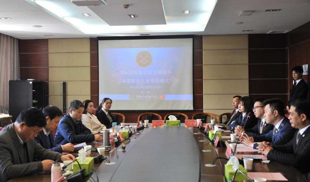 12月12日,我校与国际金钥匙学院合作洽谈会在学校2号会议室召开。国际金钥匙学院院长助理张勇,学校党委书记戴光驰、副校长王孝斌出席,教务处及物流与交通管理学院相关负责人参会。 戴光驰代表我校致欢迎辞,王孝斌详细介绍了学校办学历史及现状、物交院专业设置,并着重分享了酒店管理专业的办学成效。 张勇感谢学校对洽谈会的精心准备,介绍了国际金钥匙学院的发展历程、院校金钥匙高端服务人才培养模式、武汉地区金钥匙发展情况等,他表示,我校是全国优质院校,产教融合方面有浓厚的发展内涵,并取得了骄人的成绩,有非常强烈的合作意愿与我校开展订单培养、培训基地共建。 戴光驰表示本次洽谈为我校落实国家职业教育改革实施方案,推行“1+X”证书制度提供了新的思路,有利于提高学生就业质量、提升我校的整体形象,扩大行业的影响力。希望以本次洽谈为新的开端,将金钥匙培养与“现代学徒制”有机结合,实现标准、课程体系、导师与教师的无缝对接,全面推进校企协同余人,形成教育与产业统筹融合的发展格局。(摄影/夏丽平)