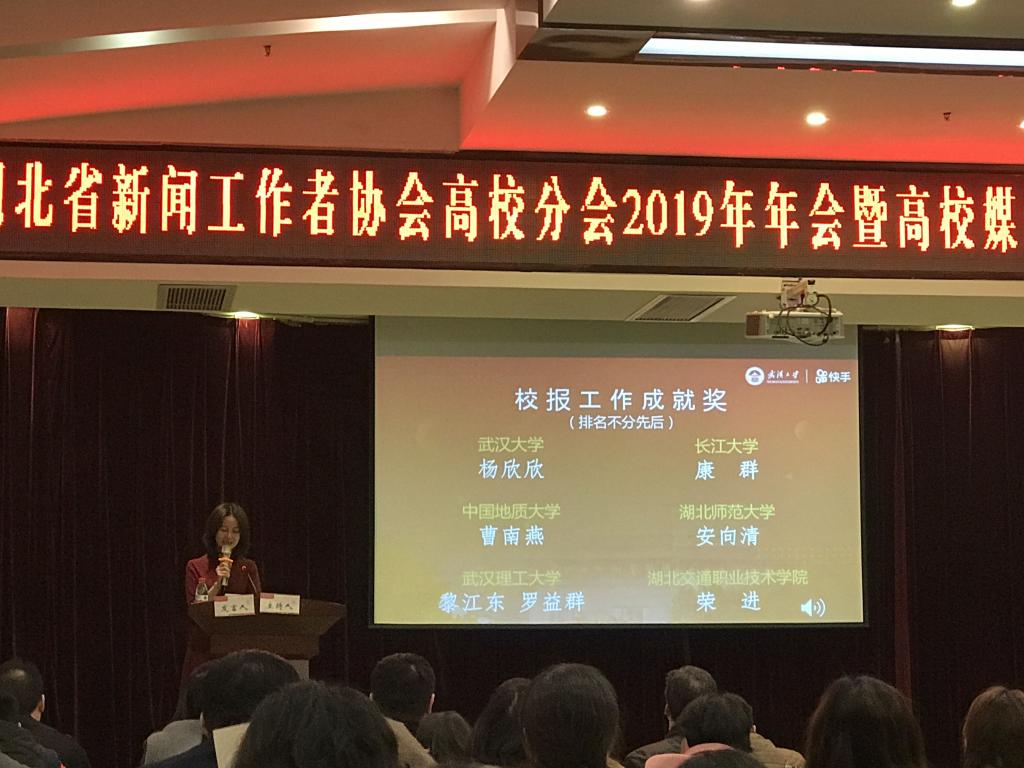 12月13日,湖北省高校新闻协会2019年年会暨高校新闻媒体发展学术研讨会在武大举行。会议表彰了2018年度湖北高校校报好新闻奖获奖单位,授予了7位为高校新闻宣传事业做出突出贡献的老报人“校报工作成就奖”。我校6件参选作品经层层遴选荣获3个一等奖,1个二等奖,2个三等奖,成为湖北省唯一获评一等奖的高职院校。我校前新闻中心主任荣进被授予“校报工作成就奖”,此奖五年一评,全省仅有武汉大学,中国地质大学,武汉理工大学,长江大学,湖北师范大学和我校获此殊荣。 来自华中科技大学、武汉大学、武汉理工大学、华中师范大学等50余所高校共选送了773件作品参选“湖北高校新闻奖”。经学校申报、专家评选、网上公示等环节,最终382件作品获奖,其中一等奖85件,二等奖107件,三等奖190件。我校童洪川、严蔚作品《校领导齐建模率队赴定点扶贫小学开展爱心捐赠活动 》和杨文婕、张骊作品《匠心育人 高职榜样——全国40余家主流融媒体聚焦我校特色办学 》获新闻摄影类一等奖;夏丽平、郑恒、徐国强作品《大一学子研发VR驾驶系统创业》获消息类一等奖;杨文婕、夏丽平、张嘉铖作品“雷锋月组稿”获得系列类二等奖;夏丽平撰写的《一个也不能少——我校义助家庭困难生上学侧记》获通讯类三等奖;夏丽平编辑的325期文艺副刊版获得版面类“三等奖”。这是我校首次在六个类别中同时获奖,且消息、新闻摄影、系列三个类别的作品均取得了我校历史最好成绩。 会上,湖北省高校新闻协会会长、武汉大学党委常委、党委宣传部部长徐业勤总结了2019年协会的工作成果,宣读了表彰决定,湖北省教育厅宣传中心主任刘维国、湖北省新闻工作者协会秘书长孔奇志等领导出席会议并为获奖单位和个人颁奖。河南省教育厅新闻办副主任陈凯、新华社新媒体中心微信编辑王朝、北京林业大学教授、博士生导师李铁铮、中国青年网科技教育中心主编李华锡、快手科技政府事务总监刘畅等为参会100余名高校新闻工作者开展了业务培训讲座。 据悉,湖北省高校新闻协会是湖北省新闻工作者协会的分会,现有会员包含了湖北省所有重点本科院校和部分高职院校,旨在团结湖北高校新闻工作者、推进高校新闻宣传工作、培养优秀新闻工作者和新闻管理人才。(摄影/贺婷婷)