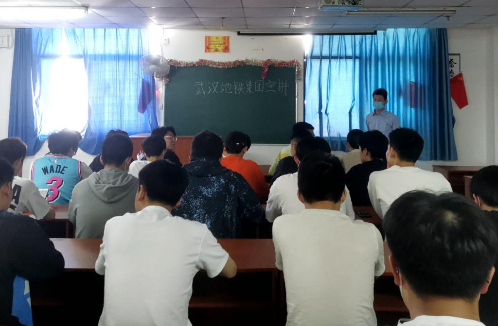 4月29日下午,武汉地铁集团人力资源部周叶青主任、教育培训部皇乾涛主任一行来校,面向我校2020级地铁订单班学生开展了宣讲见面活动。