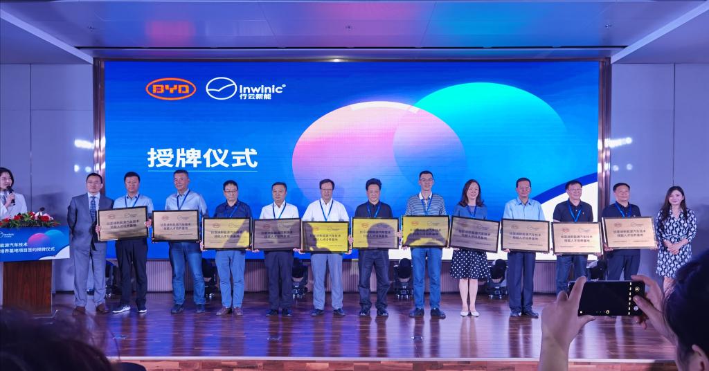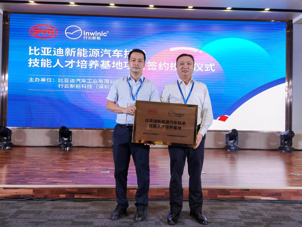 活动中,比亚迪与行云新能共同为首批合作院校颁发项目授牌,我校作为全国双高计划新能源汽车技术高水平专业群建设单位,成为该项目合作院校之一。