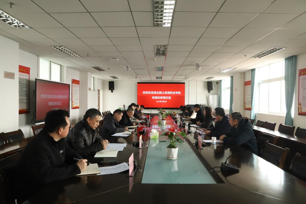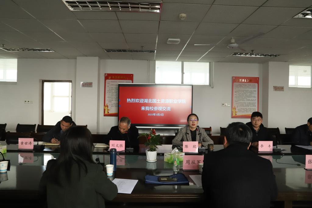 陈欣介绍了我校历史沿革、师资、专业建设、校企合作等方面情况,对周从军、朱文晶一行的到来表示热烈欢迎。周从军介绍了湖北国土资源职业学院的基本情况,他表示我们两校有着类似的发展历程,在专业发展、师资队伍建设、人才培养模式等方面都有较多可以相互学习借鉴的地方,希望今后两校加强相互交流学习。双方就“双高院校”建设、教师发展、思政教育体系建设、教学诊改平台建设、国际交流与社会服务等方面进行了讨论交流。