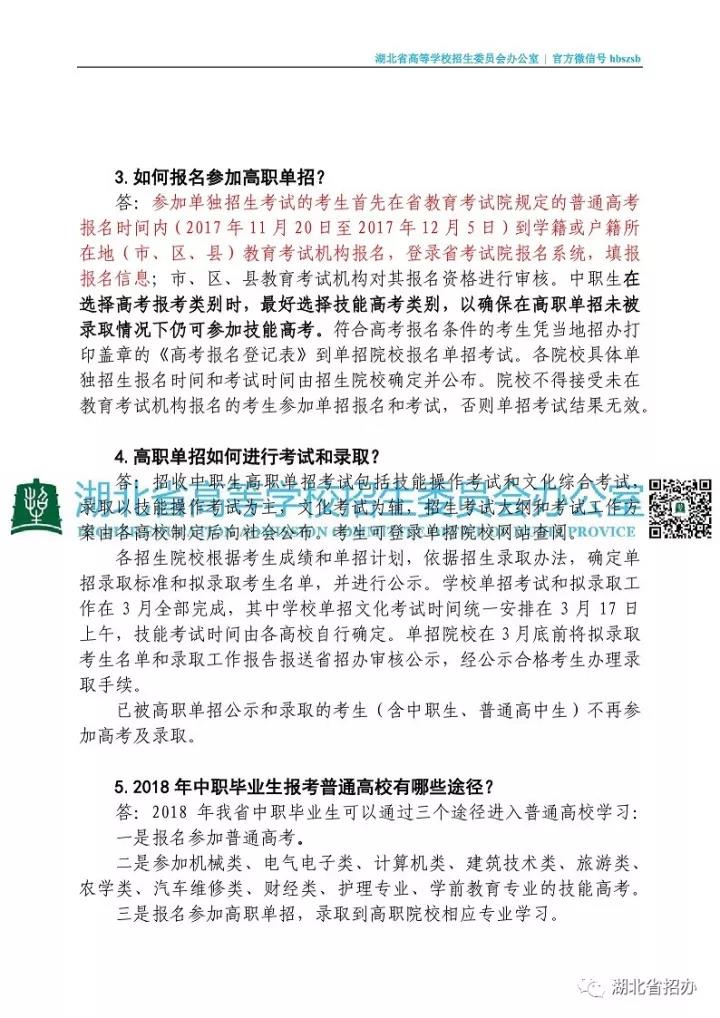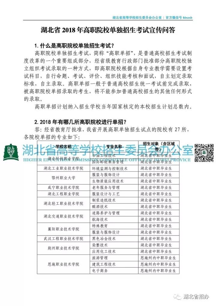 湖北省2018年高职院校单独招生考试宣传问答