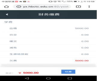 3.同学们在网上缴费时,务必注意资金安全,不要扫描来路不明的二维码,http://yx.hbctc.edu.cn为学校唯一官方网上报到缴费网址,同学们登录后首先要核对、确认个人信息,再进入缴费环节。
