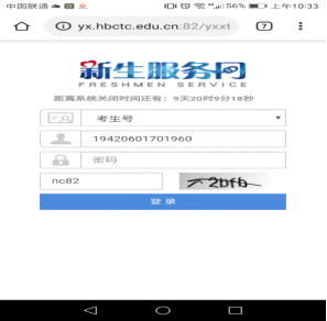 1.打开手机浏览器,输入地址http://yx.hbctc.edu.cn