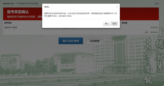 9.学校审核通过后页面如下,点击【确认并缴费】进入下一步