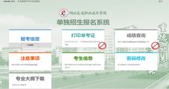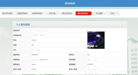 14.缴费成功,二维码页面会自动关闭,跳转到报名信息表页面