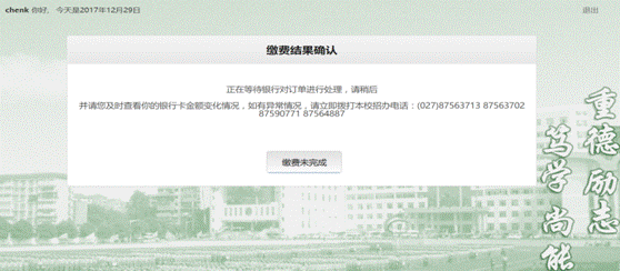 13.未缴费成功,点击缴费未完成,重新进行缴费操作