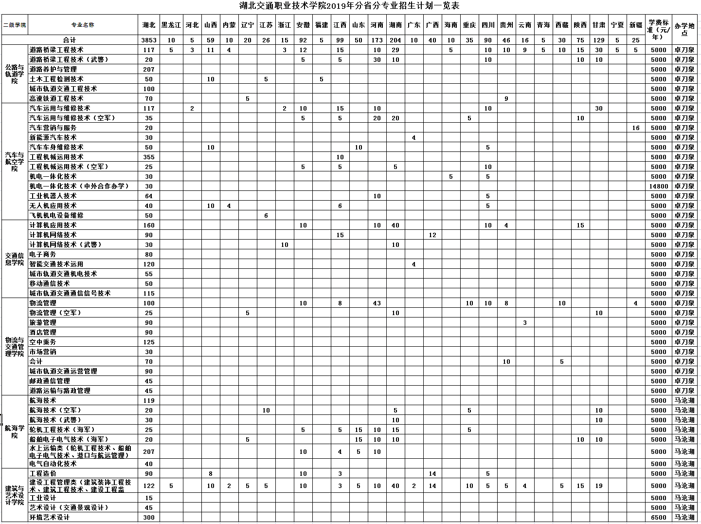 2019年分省分专业招生计划